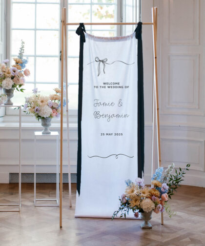 Jouw gasten ontvangen op jouw bruiloft met een echt statement? Zet een welkomstbanner neer bij de ingang van jouw venue met jullie namen, een mooie quote en/of de datum van jullie prachtige dag. Ook leuk om een plek te geven in je huis als herinnering aan jullie dag.